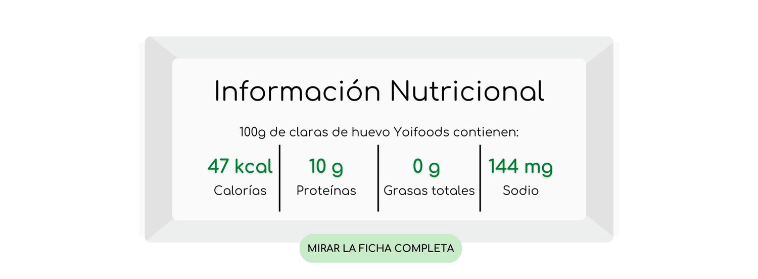 - Ingrediente: 100% claras de huevo naturales, sin ningún aditivo, conservante, ni ingrediente adicional.